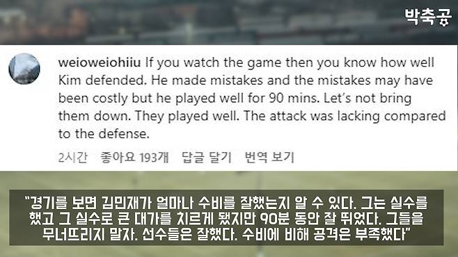 경기가 끝난 후 김민재 선수를 향한 비판들이 넘쳐났다...어떤 반응을 보였을까.