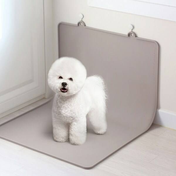 벽면에 걸 수 있는 실리콘 화장실이에요. 다리를 들고 소변을 보는 강아지에게 특히 추천합니다. 마찬가지로 세척이 쉽고, 바닥에 소변이 흐르는 걸 방지할 수 있어 좋아요.