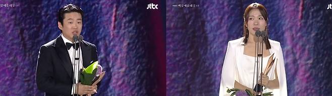 TV 부문 남녀 신인 연기상은 '무빙'의 이정하와 ENA 드라마 '유괴의 날'에서 활약한 유나가 받았다.