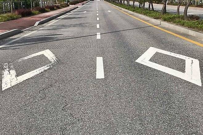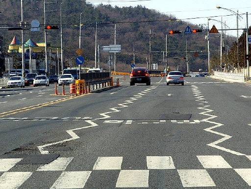 마름모 표시와 지그재그 차선의 비교