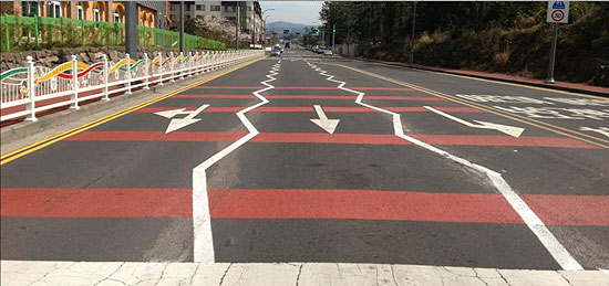 지그재그 차선의 시각적 착시 효과
