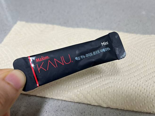 키친타월을 파우치처럼 접어서 커피가루가 밖으로 나오지 않도록 합니다.