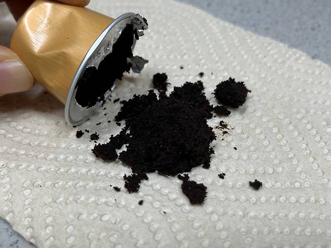 원두 찌꺼기를 사용하는 경우 수분을 거의 말리고 활용해 주세요. 그렇지 않으면 물기가 휴지에 다 스며듭니다.