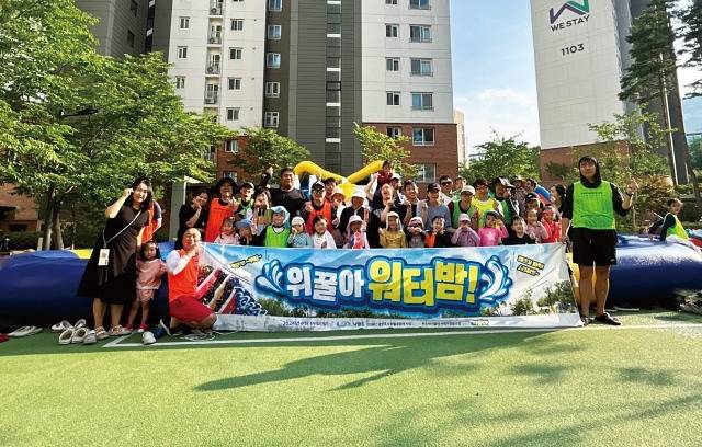 지난해 8월 마련한 ‘위꿀아 워터밤’ 행사입니다. 아파트 배드민턴장에 워터슬라이드를 설치해 아이들이 물놀이를 할 수 있게 준비했습니다. 0~7세 미취학 아동과 부모를 대상으로 행사를 기획했는데 무려 150명이 몰렸습니다. 행사 규모가 크다 보니 아빠들이 놀이시설 설치, 물 뿌리기, 참가 접수, 안전관리 등 많은 역할을 맡아야 했는데 다들 그간 진행 박사가 된 덕에 아주 즐겁게 행사를 치렀습니다.