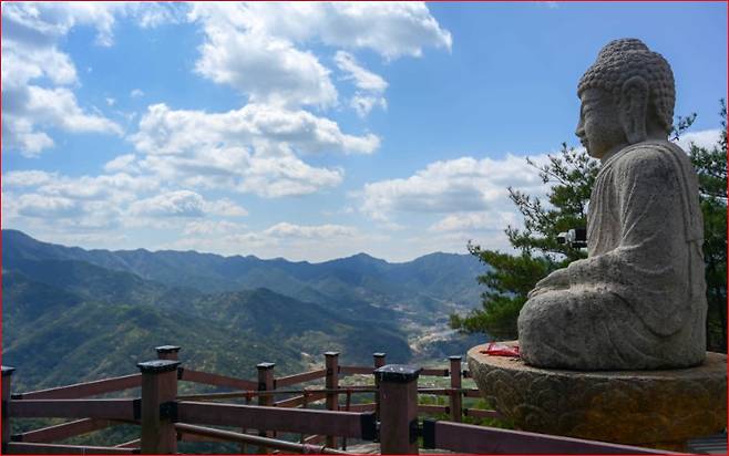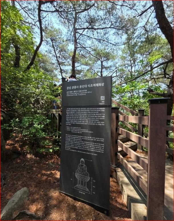 관룡사에서 500m쯤 더 걸어 올라가면, 화강암 절벽 위에 자리한 ‘용선대’에 다다릅니다. 이곳에는 통일신라 시대에 조성된 **석조여래좌상(보물 제295호)**이 자리하고 있습니다. 고요하게 아래를 내려다보는 불상은 마치 세상의 모든 풍파를 담담히 바라보는 듯한 평안한 기운을 풍깁니다.