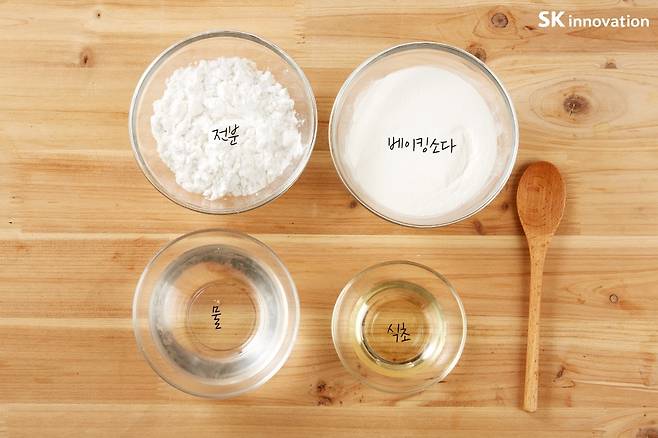 베이킹소다에 물을 조금씩 넣어가며 걸쭉한 페이스트를 만들어요. 너무 되면 발라지지 않고, 너무 묽으면 흘러내려요.