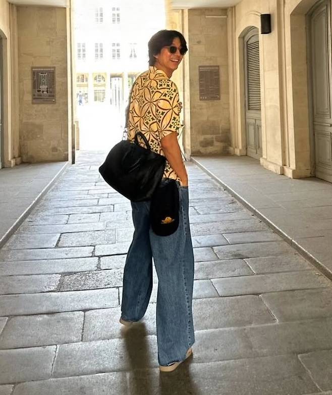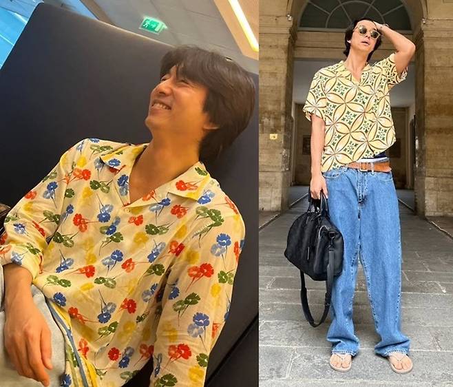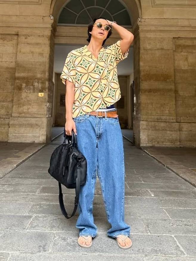 루이비통 패션쇼 스케줄을 마친 공유는 화사한 패턴의 셔츠와 루즈한 데님 팬츠를 매치한 소프트한 가이룩으로 파리의 클래식한 호텔과 유럽 골목길을 배경으로 포즈를 취한 모습이 담겼다.