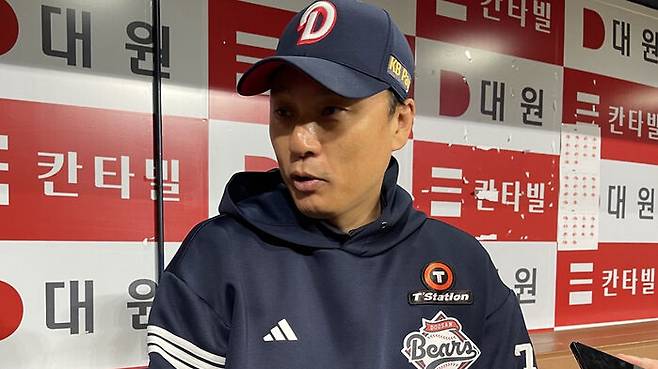 ▲ 두산 이승엽 감독이 지난 1일 서울 고척스카이돔에서 키움 히어로즈전을 앞두고 1군 선수단에 합류한 곽빈에 대해 이야기하고 있는 모습