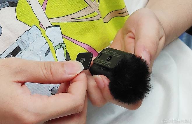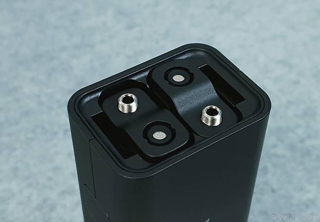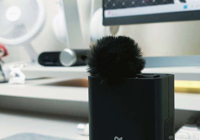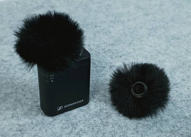 또, 마이크 주변으로 홈을 내어, 작은 사이즈의 윈드스크린을 설치할 수 있도록 했는데요. 듀얼 무선마이크로 구성된 만큼, 윈드 스크린 역시 2개 제공되며, 홈에 맞춰 끼워 넣은 뒤 회전하면 간단하게 고정할 수 있습니다.