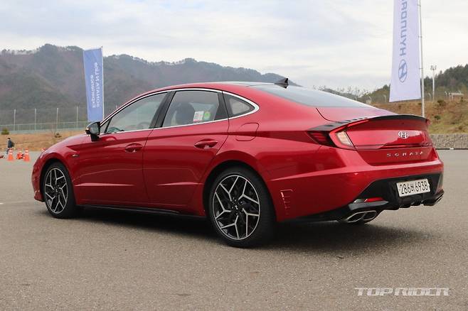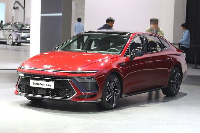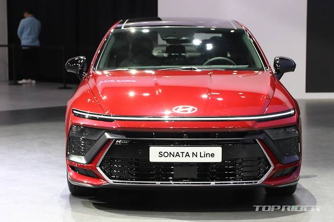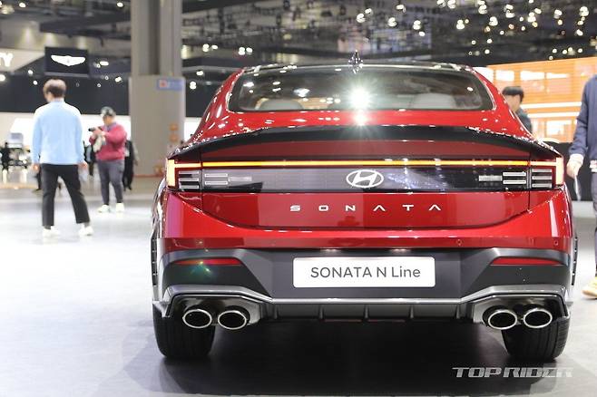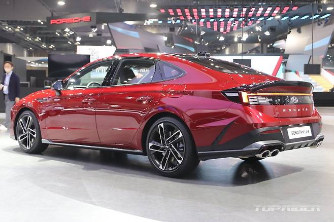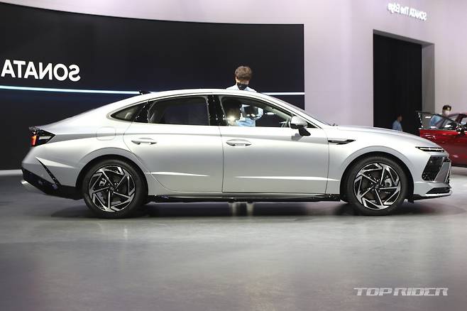 하이테크 감성의 에어로 실버 매트 컬러가 신설됐다. 신형 쏘나타 N 라인은 기본 모델에 확대된 전면부 범퍼 그릴, 레디 포인트가 포함된 다크 그레이 외장 컬러 등 전용 사양을 지원한다. 새롭게 디자인된 19인치 휠이 제공되며, 듀얼 트윈 팁 머플러는 원형으로 변경됐다.