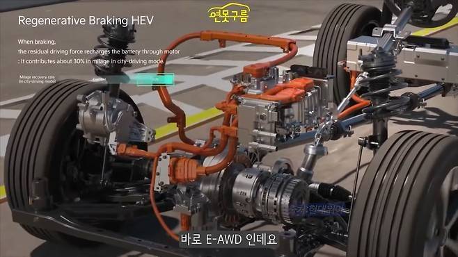 이 시스템은 기존의 전륜구동 하이브리드와는 완전히 다른 구조로, 후륜에 전기모터를 별도로 배치하는 방식이다. 1.6리터 가솔린 엔진과 전기모터가 결합되어 총 141마력의 출력을 발휘하며, 즉각적인 가속 응답성과 안정적인 코너링 성능을 동시에 제공한다.