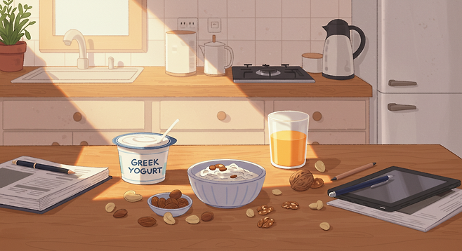 • 아침 식사율: 60% 이상, 주로 그릭 요거트, 견과류, 착즙 주스 등 건강식