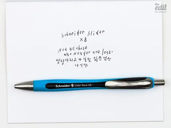 처음 펜은 Schneider Slider입니다. 바디의 종류에 따라 옵션이 달라지지만, 기본적으로 슬라이더 라인은 필기감이 거의 동일해요. 이 펜은 이름처럼 미끄러지듯 쓰는 1.0mm의 속기펜입니다. ‘오늘은 진짜 긴 글을 써야지’ 라고 마음먹은 날, 마음의 소리와 쓰는 속도를 동기화시키고 싶을 때 쓰는 정말 믿음직스러운 펜이에요.