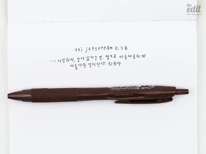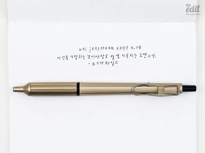 더해서 조금 고가이지만 Uni Jetstream EDGE 0.28은 볼펜과 잉크 펜의 특징을 동시에 갖춘 펜이에요. 적당한 무게감에 쓰는 글에 진중함이 얹어지는 듯한 묘한 감각을 지녔습니다.