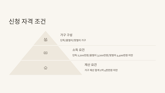 맞벌이 가구: 4,400만 원 미만 (2025년부터 소득 기준이 상향 조정되었습니다!)