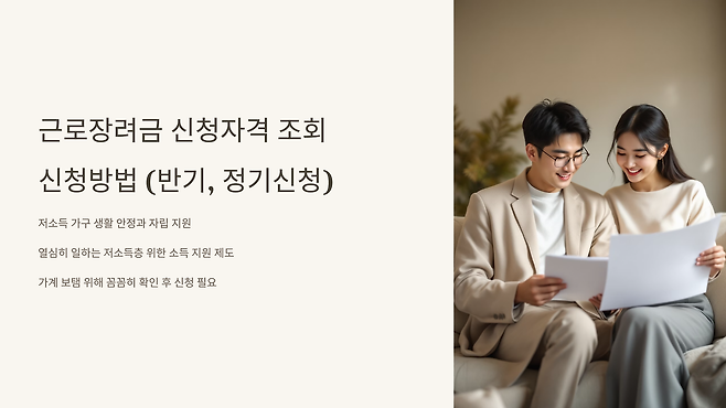 반기 신청: 근로 소득자만 신청 가능하며, 소득 발생 시점과 지급 시기를 가깝게 하여 생활 안정을 돕는 제도입니다.