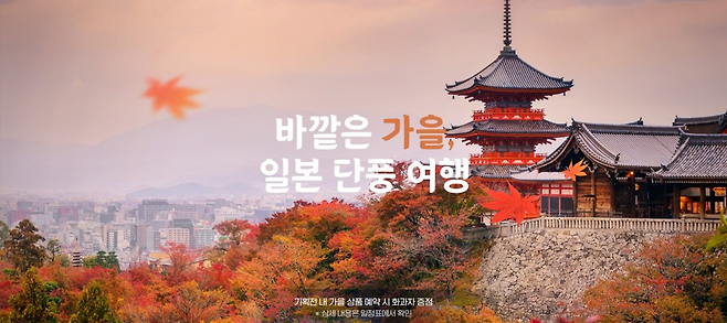 하나투어는 일본의 주요 단풍 관광 명소를 여행할 수 있는 ‘바깥은 가을, 일본 단풍 여행’ 기획전을 마련했다.