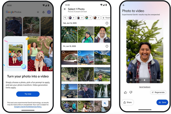 구글 포토가 구글의 최첨단 인공지능(AI) 영상 생성 모델인 '비오 3(Veo 3)'를 도입했다. 사진첩에 저장된 이미지를 활용해 새로운 동영상을 만들 수 있게 됐다. 구글은 최근 '구글 포토'에 비오 3 모델을 추가해 더욱 다양한 기능을 제공한다고 밝혔다.
