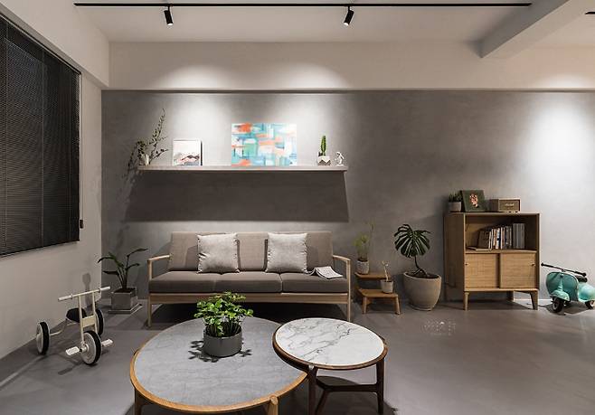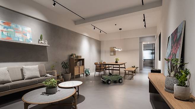 가족 세 식구가 가장 많이 머무는 이 공간은 원래 방으로 사용되던 곳을 다이닝 룸으로 바꾸면서 수직 동선을 새롭게 구성했다. 하나의 식탁 아래 모인 가족의 일상이 고스란히 담겨 있으며, 따뜻한 우드 소재 가구와 식물이 포근한 분위기를 더한다. 좌우를 자연스럽게 이어주는 조명은 공간의 중심 역할을 한다.