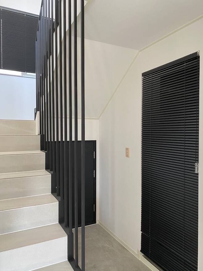 진짜 문제의 계단이에요. 타일 계단으로 바꿨는데 기존 계단 목작업이 수평수직이 맞지가 않아서 타일 작업하는데 꽤나 애를 먹었지만 너무 마음에 들어요. 난간 디자인도 그렇구요. 여담이지만 제가 키가 많이 크거든요. 제 키나 분위기에 어울리는 난간 디자인이라며 대표님이 추천해 주신 거예요.