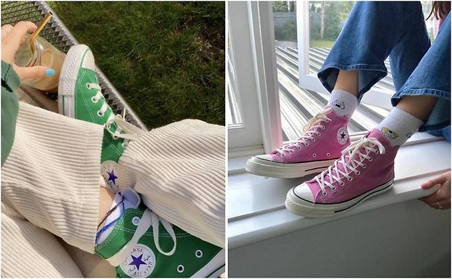 귀여운 스타일의 하이탑 스니커즈인데요,