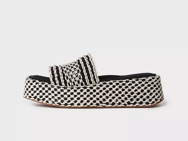 랙앤본 로건 슬라이드는 우븐 재활용 소재로 제작된 여름용 슬리퍼로, 편안하면서 시원한 착화감과 다리가 길어 보이게 만드는 높은 플랫폼으로 휴양지 룩에 특히 잘 어울린다. 이 밖에도 토리버치, 콜한 등은 브랜드 로고를 활용한 우아하고 고급스러운 디자인으로 구두 대신 간편하게 신을 수 있는 제품들을 선보이고 있다. 가격은 20~30만 원대.