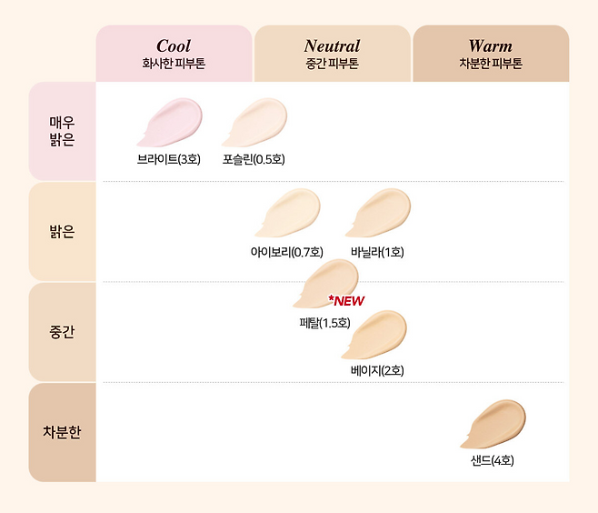 피부 톤에 맞는 베이지 컬러들로 구성된