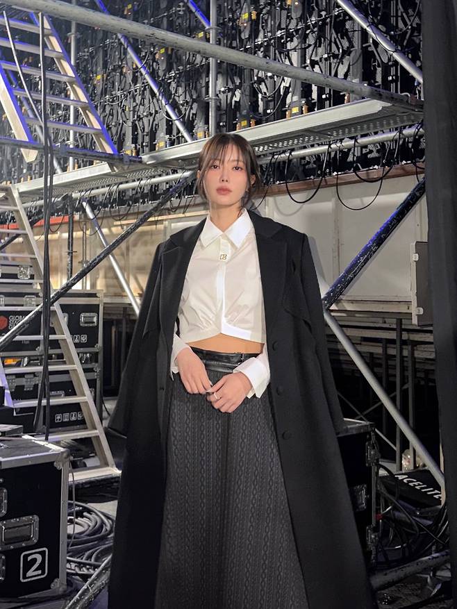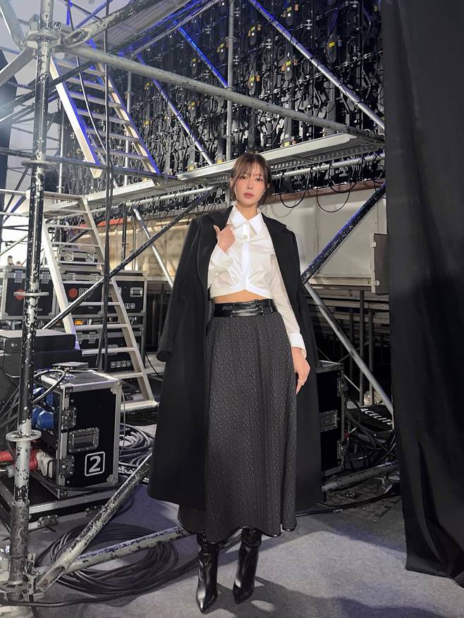 임수향이 보여준 이번 모습은 복잡한 구조물이 설치된 촬영 현장을 배경으로 본인만의 시크하고 세련된 매력을 극대화한 감각적인 차림이에요.