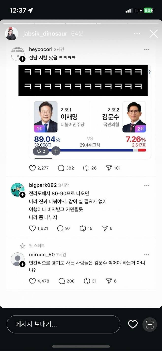 ์ฌ๊ฑด์ ๋ฐ๋จ์ ์ก์๊ณต๋ฃก์ด ์์ ์ ์ธ์คํ๊ทธ๋จ์ ์ฌ๋ฆฐ ๊ฒ์๋ฌผ์ด์์ด์. ๐ฑ ๊ทธ๋ ๋ ์ ๋จ ์ง์ญ์ ์ 21๋ ๋ํต๋ น ์ ๊ฑฐ ํฌํ ๊ฒฐ๊ณผ๋ฅผ ๊ณต์ ํ๋ฉด์, ํ ๋๋ฆฌ๊พผ์ด ์ด โ์ ๋จ ์ง๋ ๋ฌ๋คโ๋ผ๋ ๋นํ์ฑ ๋ฉํธ์ โใ ใ ใ ใ โ๋ผ๋ฉฐ ๋์กฐํ๊ฑฐ๋ ์. ๐คฆโโ๏ธ