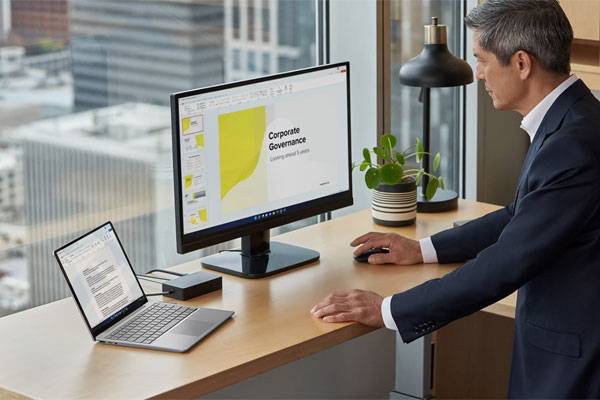 USB-C 및 UBS-A 포트에 액세서리를 연결하여 작업 생산성을 유지할 수 있고, 윈도우 11 및 마이크로소프트 365를 함께 활용하면 클라우드 지원 환경에서 더욱 다양한 방식으로 공동 작업을 진행할 수 있으므로 이전보다 훨씬 많은 업무를 처리할 수 있다.