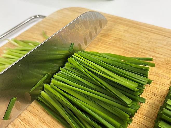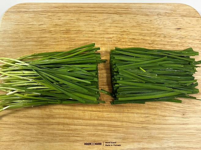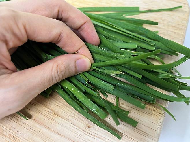 싱싱한 부추는 다듬을 게 거의 없긴 하지만 그래도 이물질이나 흙 찌꺼기 등이 없는지 확인하세요. 시들거나 무른 잎은 모두 제거합니다.