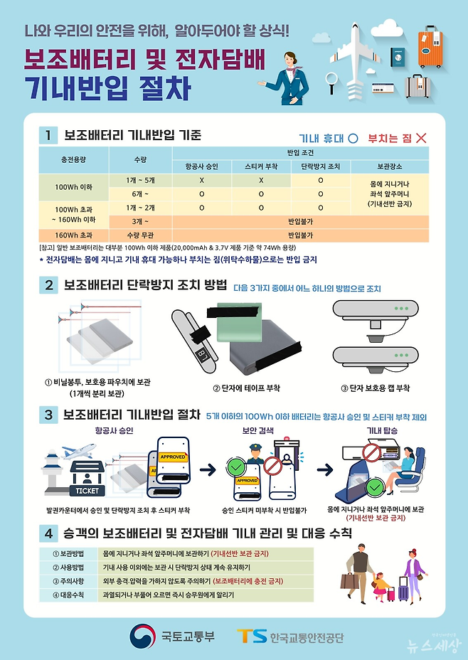 물론 배터리 셀 제조사와 보조배터리 제조사가 여러 겹의 안전 장치를 해두기 때문에 리튬이온 배터리라고 해서 기피할 필요는 없지만, 최근 김해공항에서 발생한 비행기 내부 화재 사고 이후 항공사 및 국토부에서 보조배터리를 더 엄격하게 관리하는 추세(3월 1일부터 100~160Wh 보조배터리를 항공사 승인하에 2개까지 반입 허용, 선반 보관 금지 등)이고, 사회적으로도 보조배터리가 안전한지 여부에 대한 관심이 늘고 있으므로 이왕 구매하는 거라면 리튬폴리머 배터리 셀을 사용한 제품을 선택하는 것이 심리적으로 더 든든하겠다.