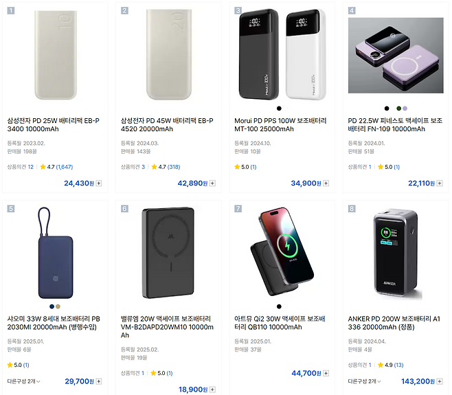 용량과 퀄리티, 충전 속도, 디자인, 포트 구성 등...