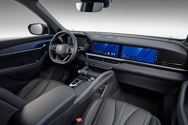 실내에는 'openR(오픈알) 파노라마 스크린'이 탑재됐는대, 12.3인치 TFT 클러스터, 12.3인치 센터 디스플레이, 국산 모델 중 최초의 12.3인치 동승석 디스플레이 등 총 세 개의 스크린으로 구성된다.