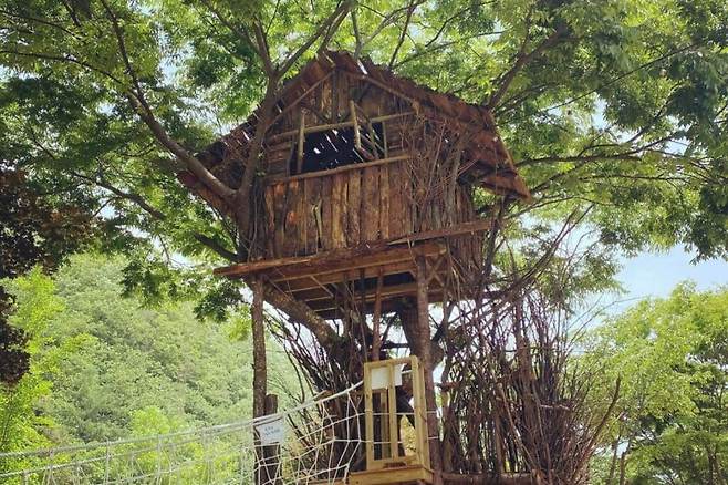 트리하우스 계곡야영장은 우리나라 최초로 허가된 트리하우스로, 100% 국산 낙엽송으로 제작된 트리하우스를 자랑한다.