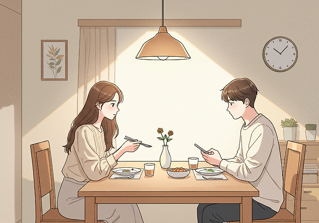 같은 공간에 있어도 각자 휴대폰을 보고 있거나, 대화 없이 TV 소리만 가득한 시간이 많아진다면, 그 침묵은 단순한 ‘편안함’과는 다를 수 있습니다.