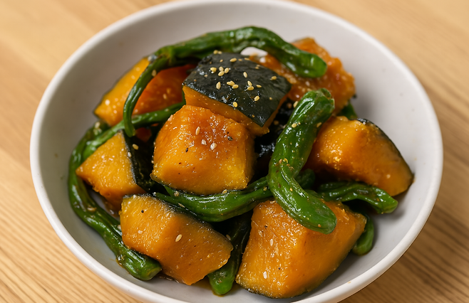 조리 순서 팁: 단호박은 너무 익히지 말고 식감 있게. 꽈리고추는 충분히 익혀야 더 쫄깃쫄깃해요.