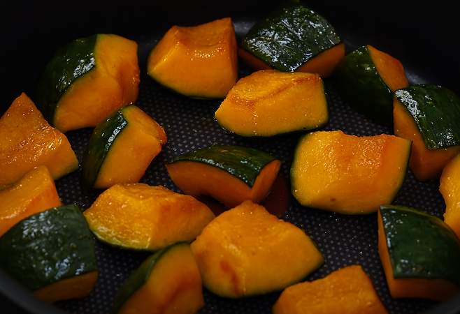 단호박: 베타카로틴과 식이섬유가 풍부해 눈 건강과 변비 예방에 좋아요.