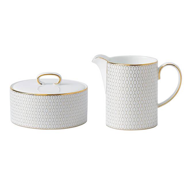 지오 골드 슈가 크리머 세트는 옥타곤 패턴과 22캐럿 금 장식으로