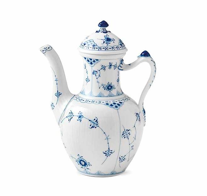 아트 디렉터 아놀드 크로그가 디자인한 블루 하프 레이스 커피팟은