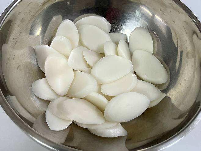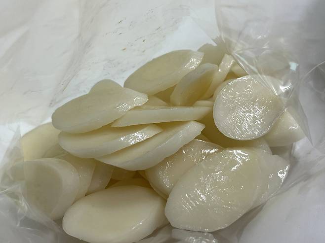 떡국떡에 이것을 한 스푼 넣어 보관해 보세요. 갈라지고 딱딱했던 떡국떡, 얼렸다 녹여도 말랑말랑해집니다.