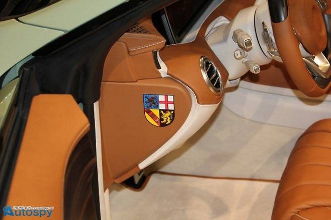 실내는 꼬냑 컬러의 나파 가죽으로 마감되어 있으며, 우아함과 고급스러움을 극대화합니다. 특히 핸드메이드로 제작된 리얼 우드 트림은 클래식 카의 감성을 완벽하게 재현합니다.