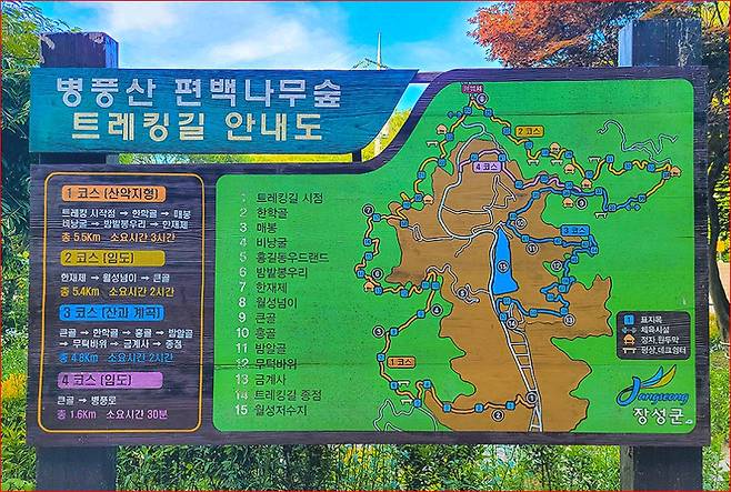 3코스 – 하늘바람길 4.8km 약 2시간 계곡길과 산길 조화