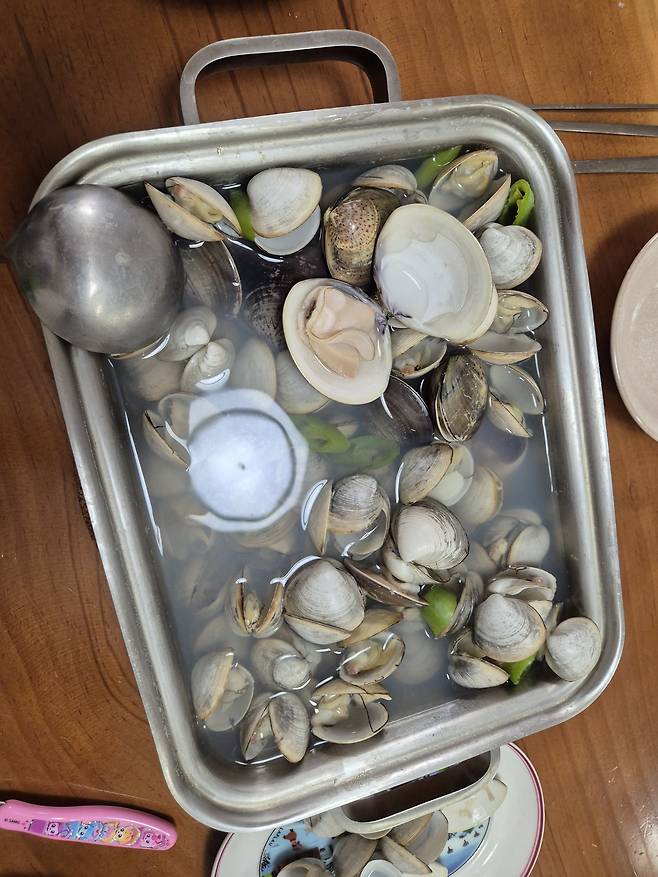 하루 해감하고 조개탕이랑 스파게티 해먹었는데 어제 고생한게 보람이 있네요~^^