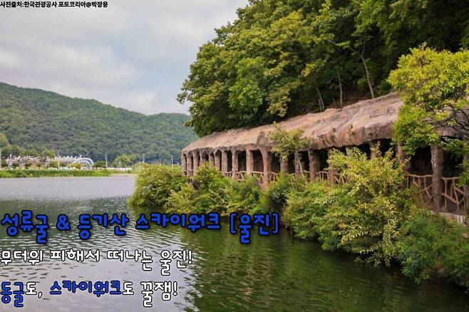 천연기념물로 지정된 성류굴은 신비로운 종유석과 석순이 가득한 동굴로, 특히 요즘 같은 역대급 폭염에 대피해 있기 아주 좋은 명소입니다. 또 등기산 스카이워크에서 동해를 배경으로 인증샷도 남겨보세요.