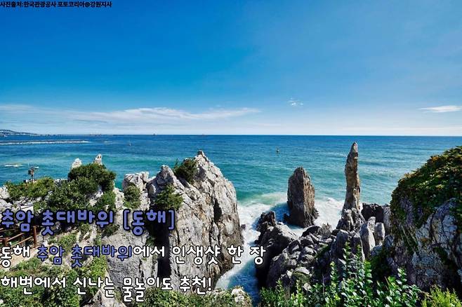 7번 국도 여행의 끝자락인 강원도에 입성하여 드라이브를 하다 보면, 어디선가 많이 본 바위가 있습니다. 바로 애국가 첫 소절의 배경 화면으로 유명한 추암 촛대바위인데요.