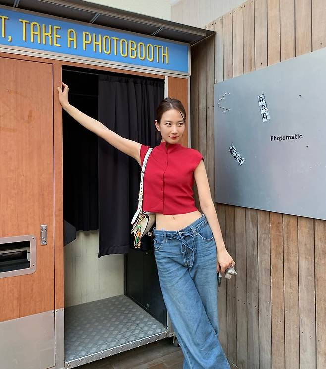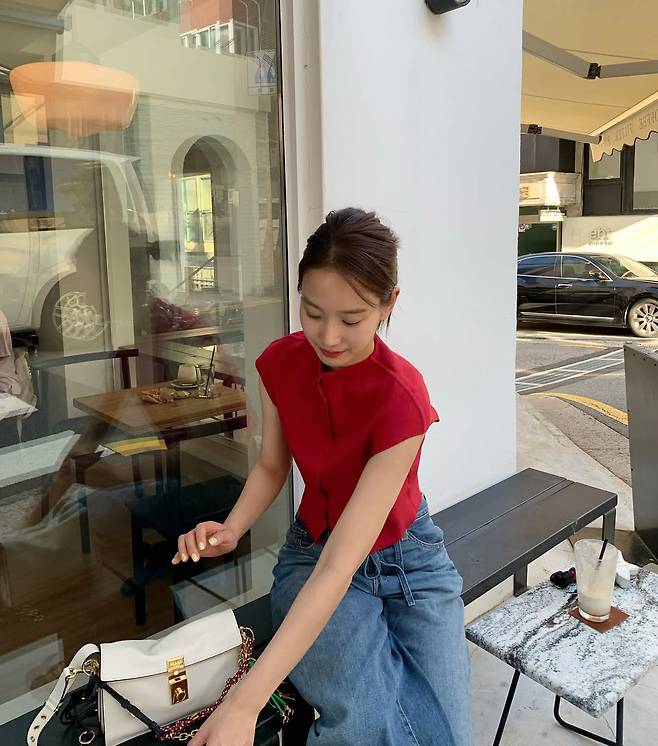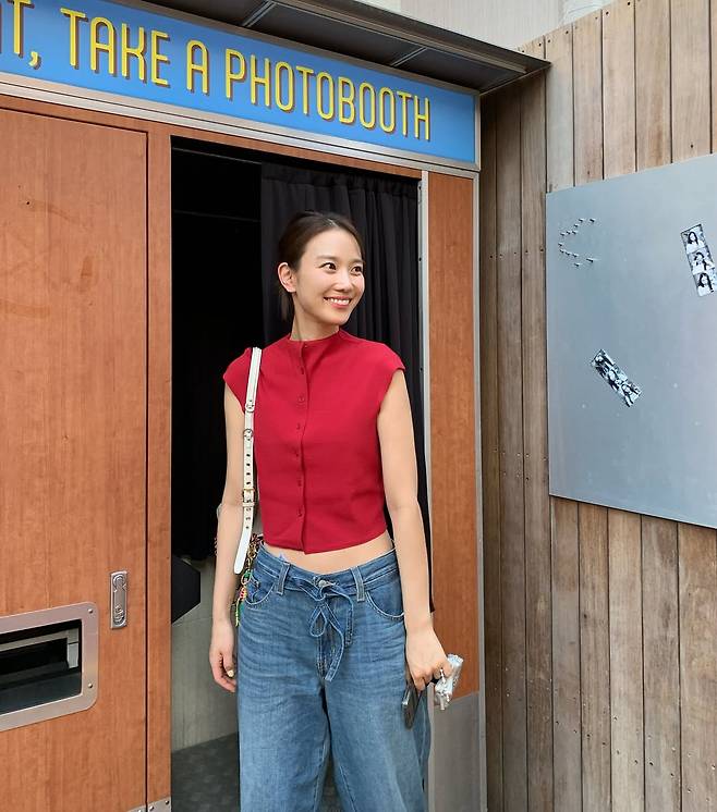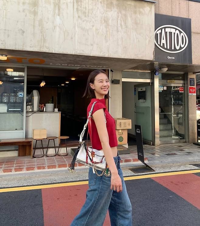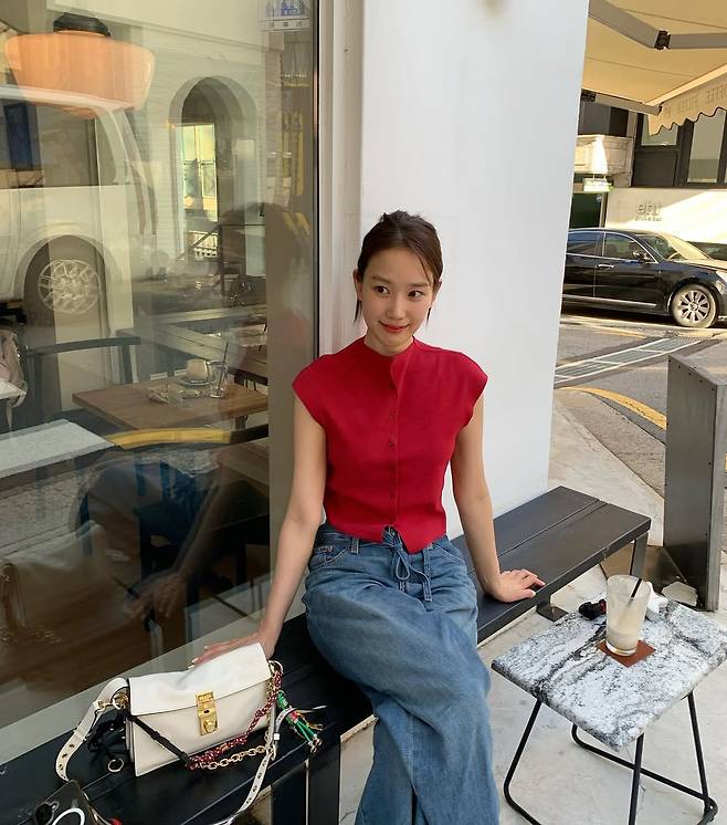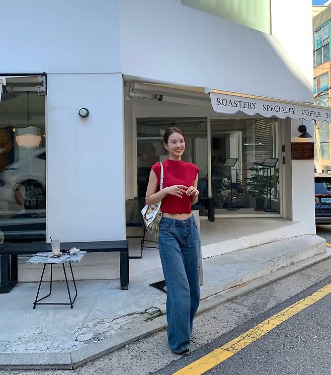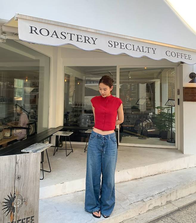 배우 장희령이 '사복 여신'이라는 자신의 타이틀을 다시 한번 완벽하게 증명했다. 강렬한 레드 크롭톱과 와이드 데님 팬츠.