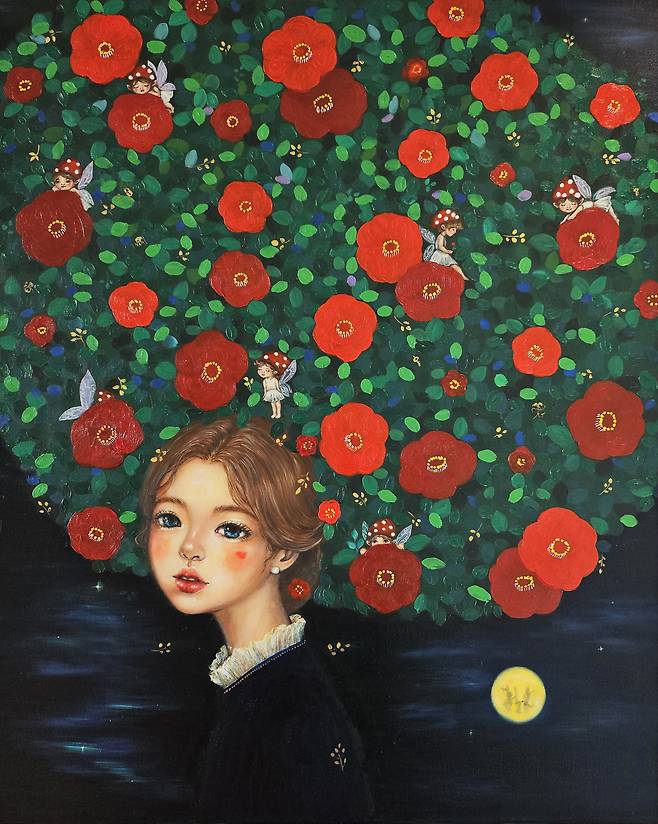 아름다운 자연을 한가득 품고 있는 소녀들은 작가 자신의 모습을 투영한 자화상이지만 제각기 다른 얼굴이다. 이들은 신비스럽고 이국적이거나 동시에 동양적 외모를 가지고 있으며, 볼이 빨간 동그란 얼굴에 작은 입술을 가진 소녀의 모습을 띤다.