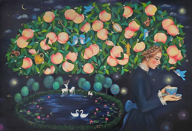인물의 표정, 자세, 눈빛 등을 통해 작가 본인의 심성을 투영한 감정이 표현된다. 꿈꾸는 이상적인 세상과 행복은 멀리 존재하는 것이 아니라 이미 내 정신세계 속에 풍요롭게 펼쳐져 있고 스스로가 자각하기만을 기다리고 있다는 메시지를 작품 속 인물을 통해 전달한다.