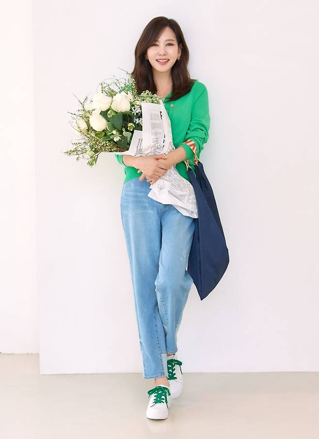 배우 김남주가 에코백과 카디건으로 멋스러우면서도 예쁜 봄 데일리룩을 완성했다.
